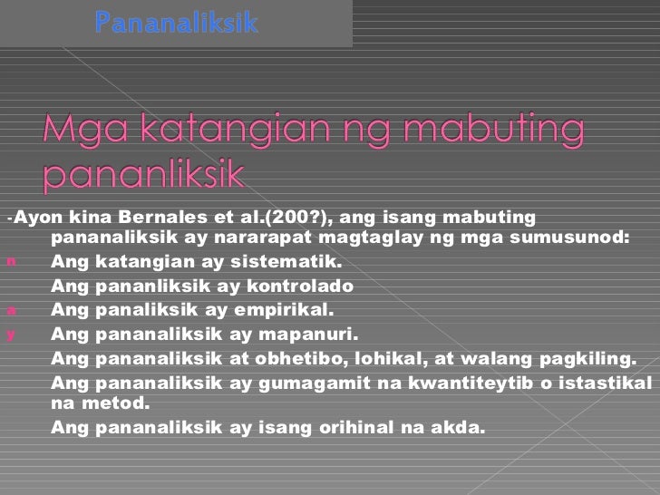 Sa pagsulat ng ganitong uri ng sulatin, ang iba’t ibang etika ay nararapat na pahalagahan tulad ng copyright na kung saan ang may akda ng isang sipi ay nararapat na mabigyan ng halaga alinsunod na rin sa batas republika blg. Halimbawa ng pamagat sa pananaliksik mga mungkahing paksa sa pananaliksik isang pamanahong papel relj100wzdl1 pagtingin sa diyaryo upang alamin kung nakapasa sa isang board examination pagtingin ng winning number ng Ayon kina constantino at zafra, ang mga panuntunan sa pananaliksik ay ang sumusunod: