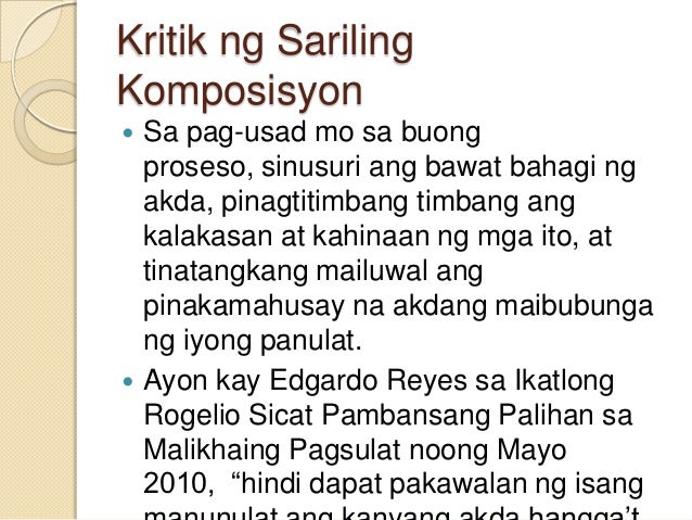 Bakit mahalaga ang pagsulat ng komposisyon. Kaanyuan ng komposisyon ayon naman sa anyong ipinapahayag, mauri ang komposisyon bilang deskriptibo, naratibo, ekspositori at arumentatibo. Kung ang paksa ay tungkol sa reclusion perpetua o 40 taong pagkakabilanggo, ang mga anggulo na. Alamin ang mga pangangailangang ibinigay ng guro sa pagbuo ng panimulang pananaliksik.