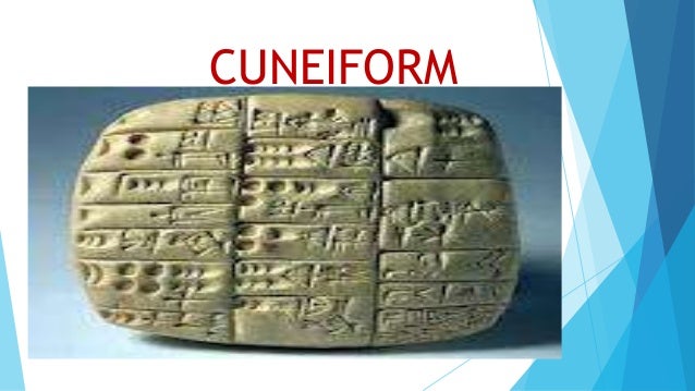 Cuneiforme ay isa sa mga pinakamaagang sistema ng pagsulatito ang paraan ng pagsulat ng mga sumerian. Ito ang paraan ng pagsulat ng mga sumerian. Naging posible din ang pagsasaka dahil sa tubig na nagmumula sa mga latian.